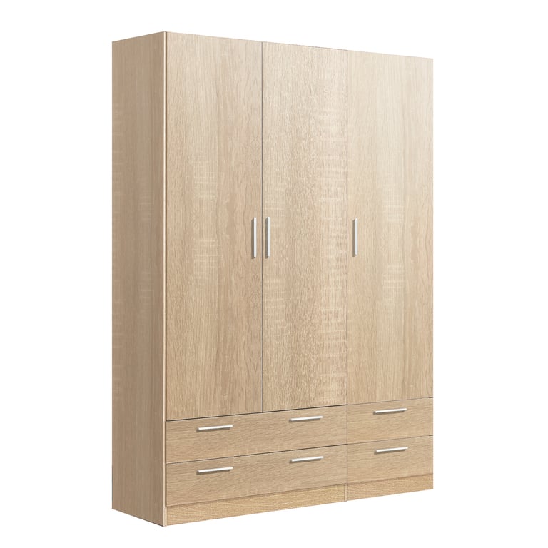 ●Armario ropero con 3 puertas abatibles + 4 cajones con guias metálicas.