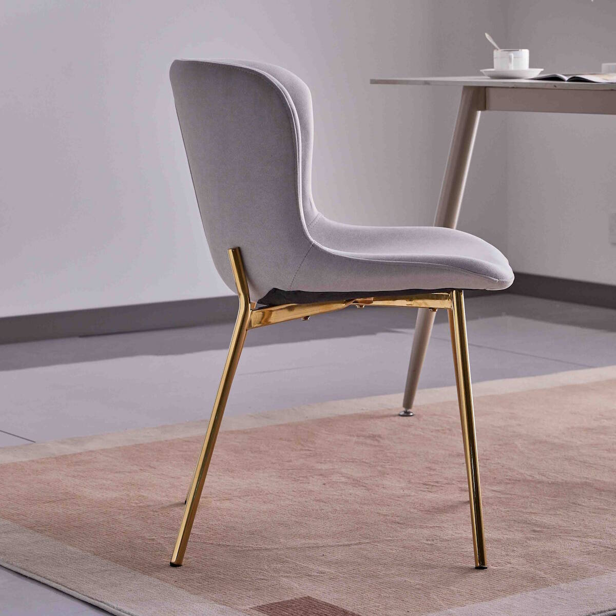 Inicio NKR Home SILLA MOD. CAIRO TELA C/ GRIS CLARO – PATA DORADA SE SIRVE EN CAJAS DE 4 UDS