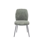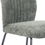 Silla tapizada en tela verde musgo con patas en acabado color negro.  Asiento y respaldo ergonómicos y acolchados. También disponible en colores piedra, grafito y azul.  Se sirve en cajas de 2 unidades.