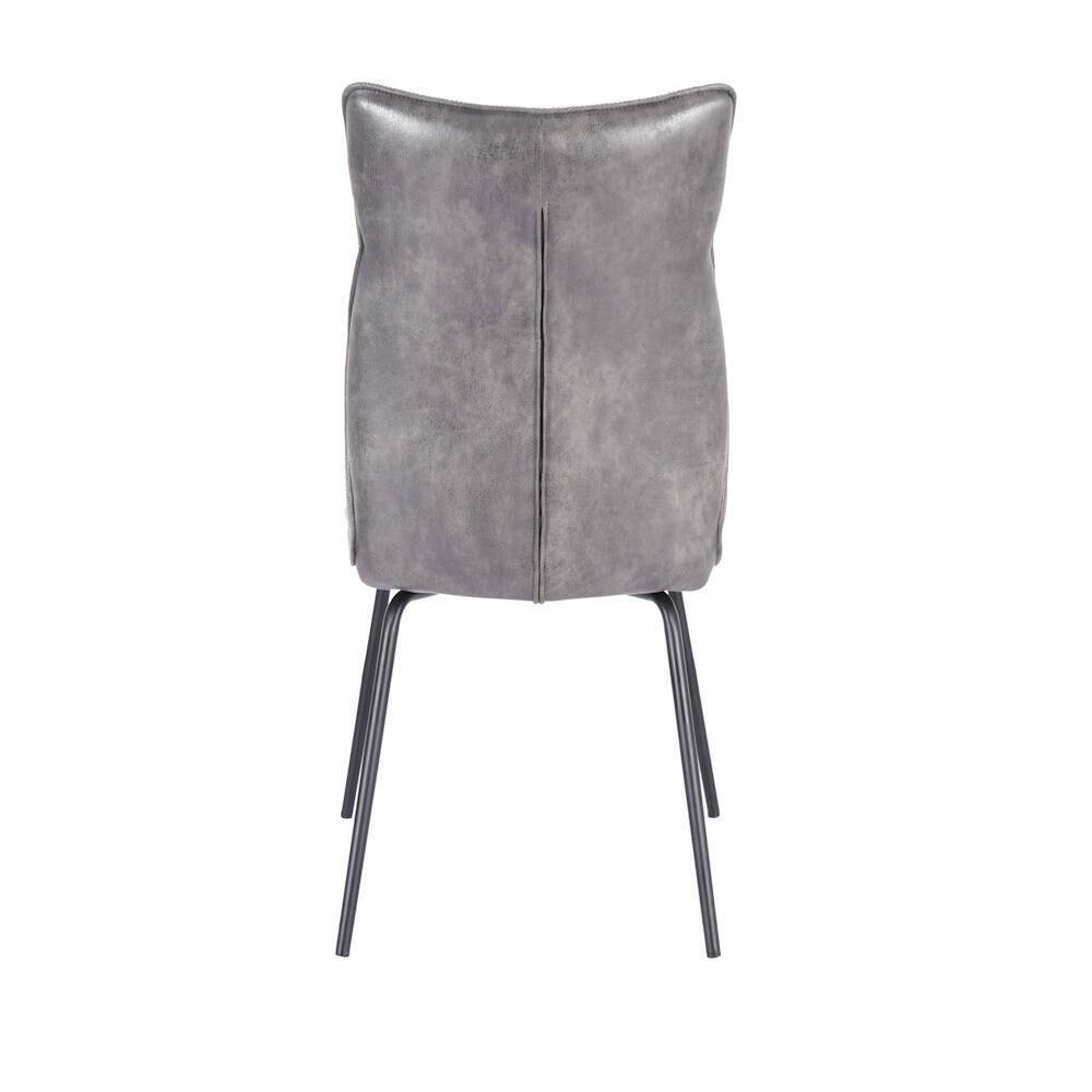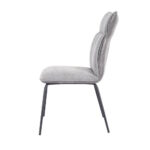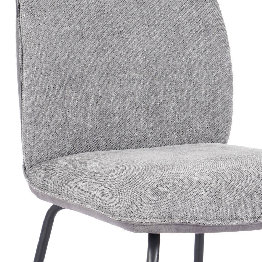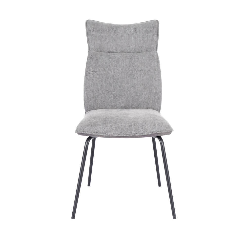 Silla tapizada en tela color gris con patas en acabado color negro.  Asiento y respaldo en tela ergonómicos y acolchados. Trasera tapizada en símil napa. También disponible en colores beige, mostaza y teja.  Se sirve en cajas de 2 unidades.